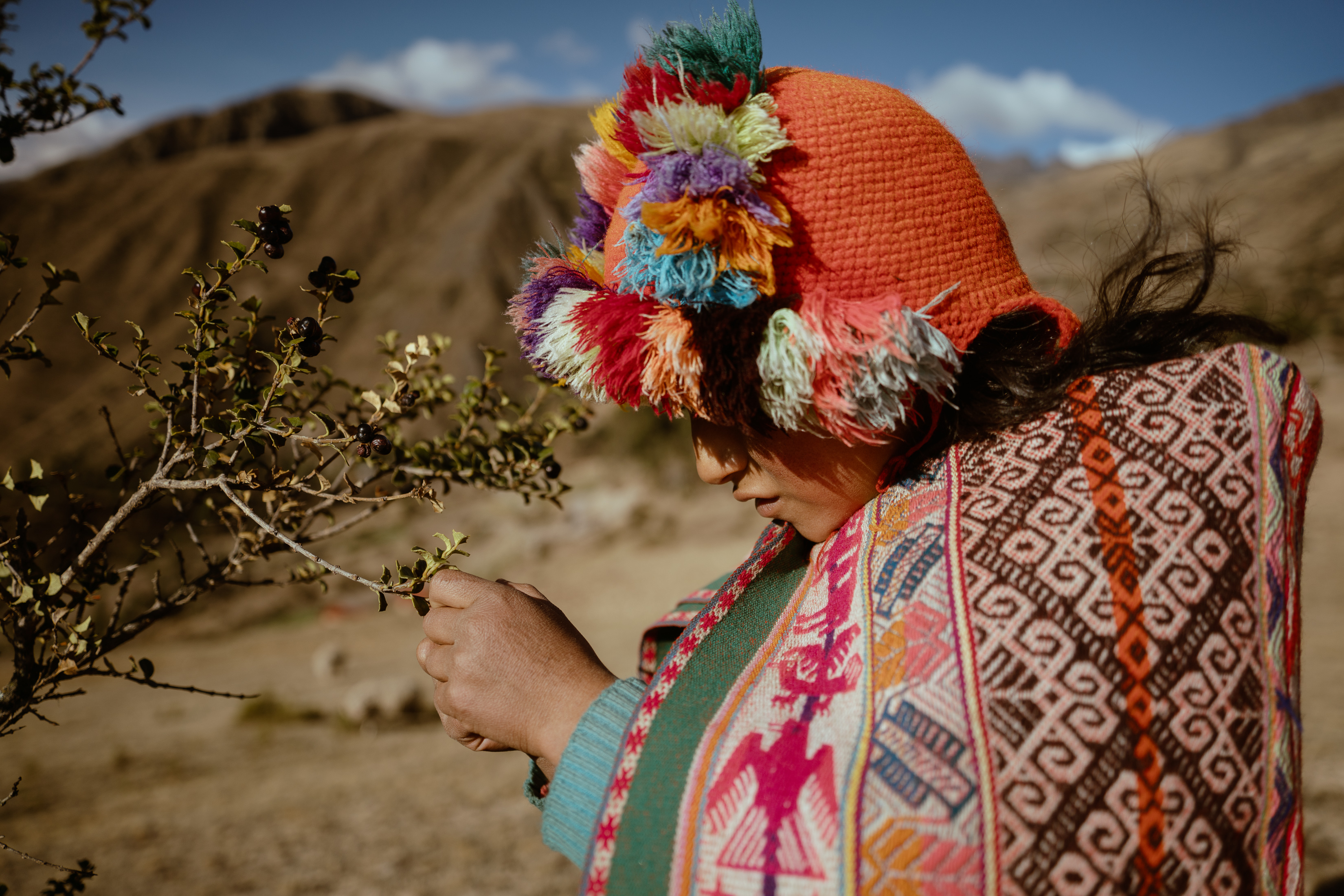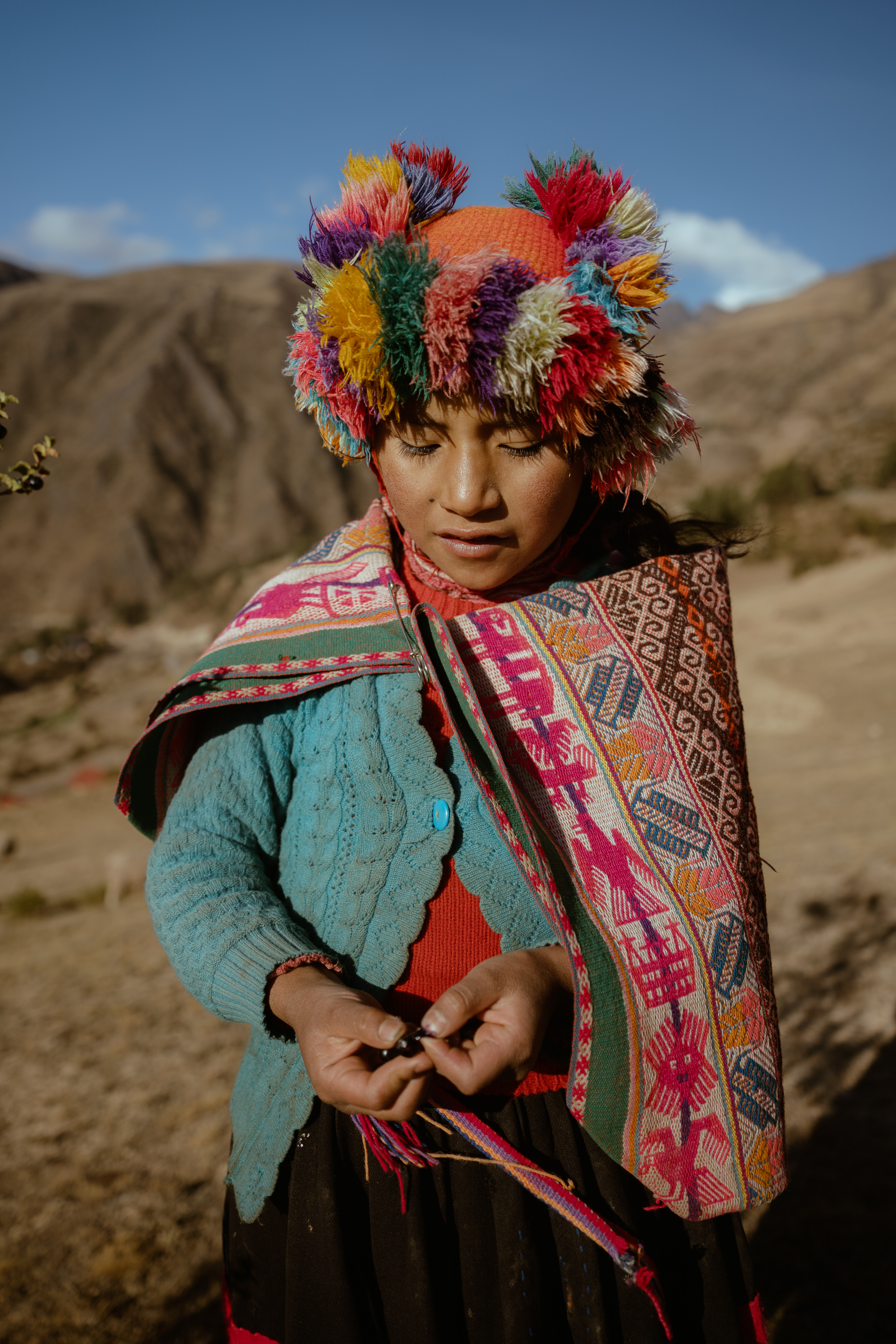 With Spanish as our second language (Quechua is the primary language in this area), Janet showed me around her pueblo. This mountainside is all she really knows, but she was so excited to lead me through the various trails, viewpoints, and family pastures, pointing out her community’s way of life. I could barely keep up; I tried to hide my complete exhaustion from the thin air as Janet effortlessly floated up the mountain. She would stop to show me different plants and explain their uses. “Mira! Estos se usan para pigmento,” she said, showing me the wild berries commonly used to dye alpaca fiber.