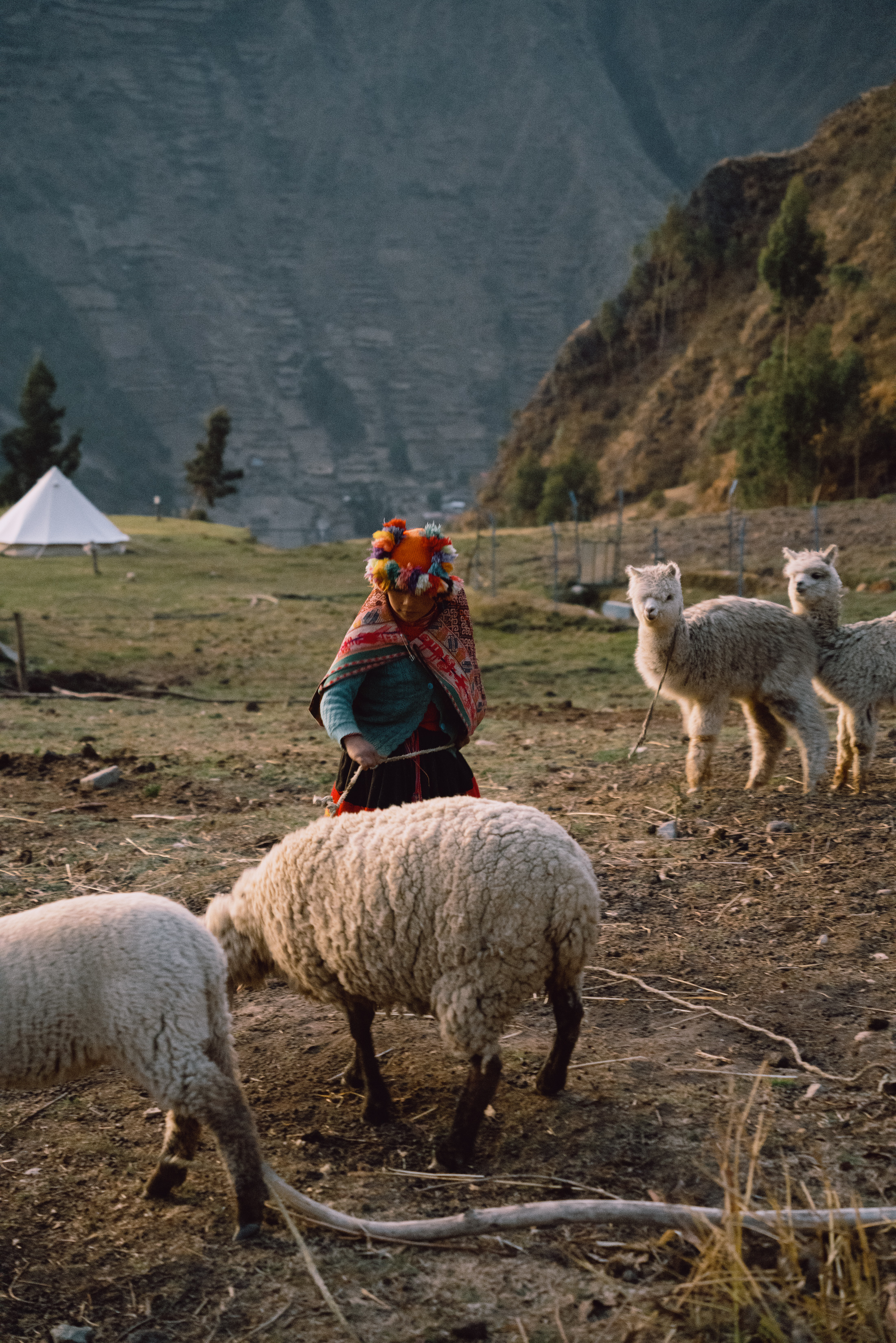 After wrangling the family sheep, alpacas, and donkey, we finished the evening playing games with her brother and enjoying a nice family dinner (lomo saltado!) before I settled into my tent overlooking the distant moonlit peaks towering above Huilloc.