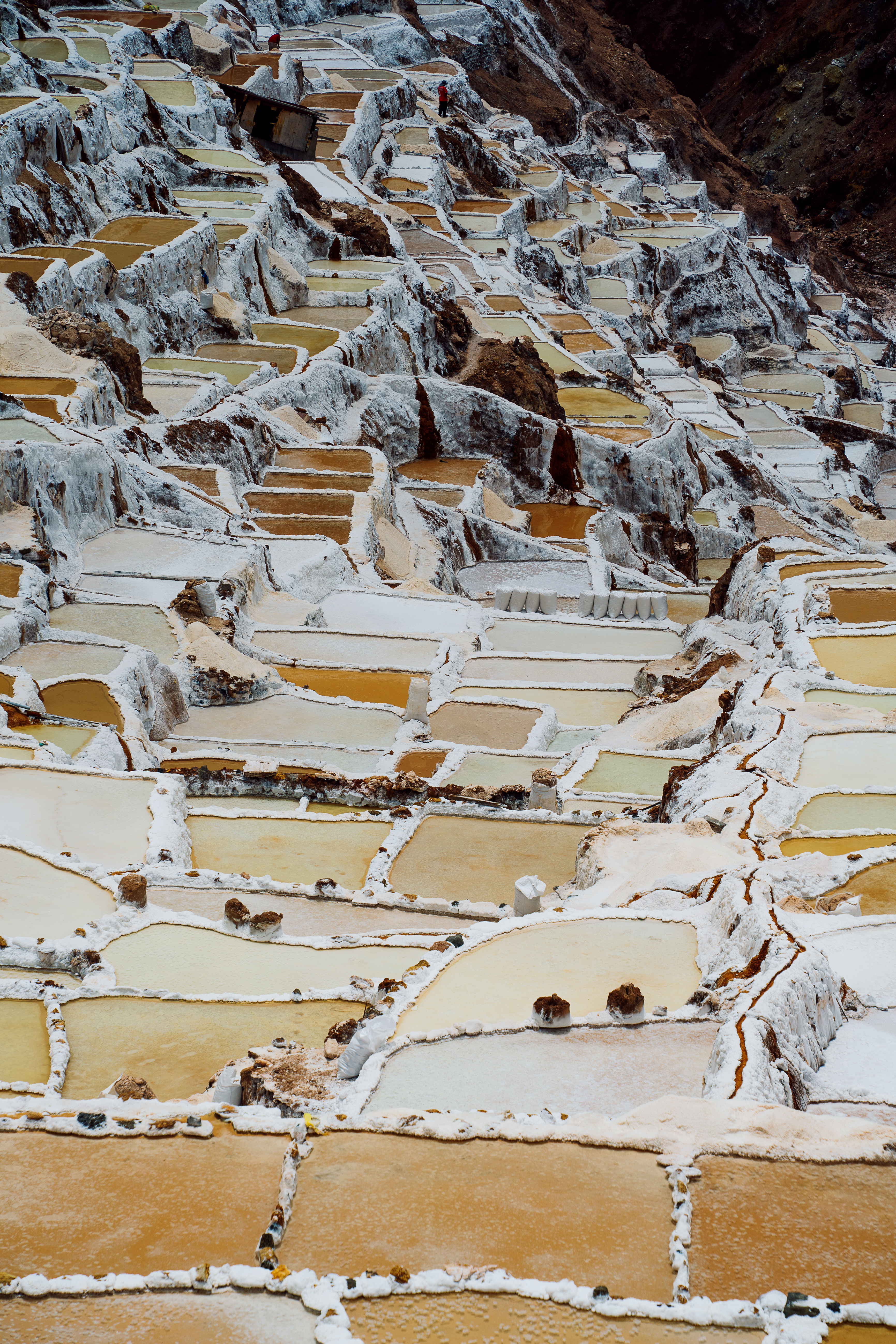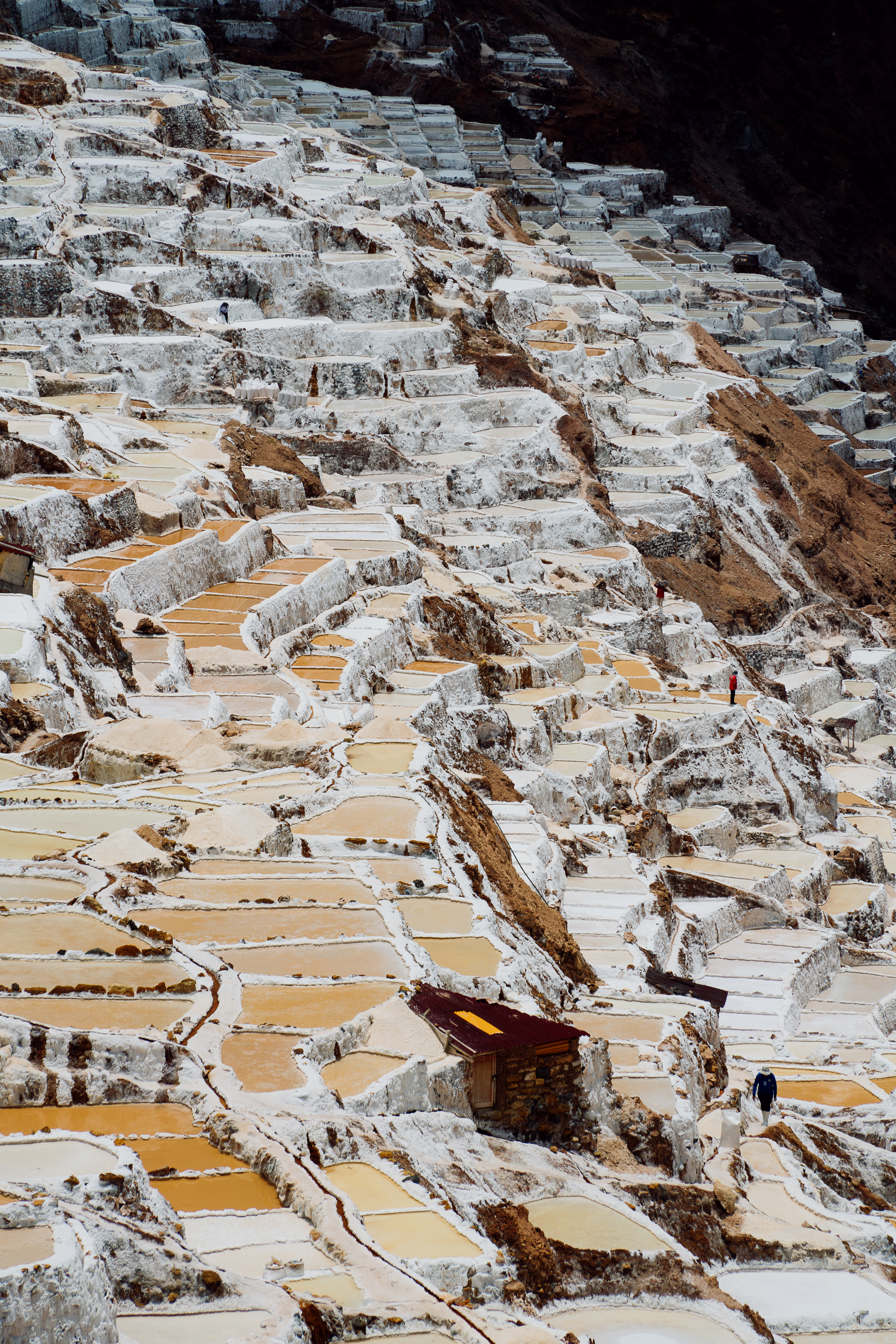 One of the highlights was the still-in-use salt mines at Moray; they have been using the spring-fed salt mines since before the Incas! The Salinera de Maras is made up of approximately 4,500 natural salt wells in the Sacred Valley of Peru. Here in the Andes, a hot spring emerges at the top of the valley and sends a small stream of super duper salty water into the pans below, which is then evaporated to produce the salt. Evidence shows that the salt mines were built by the Wari civilization, pre-Inca. Production methods haven’t changed much over the years, as local families tend to their own salt wells without any external control. It is also one of the few places worldwide producing pink salt.