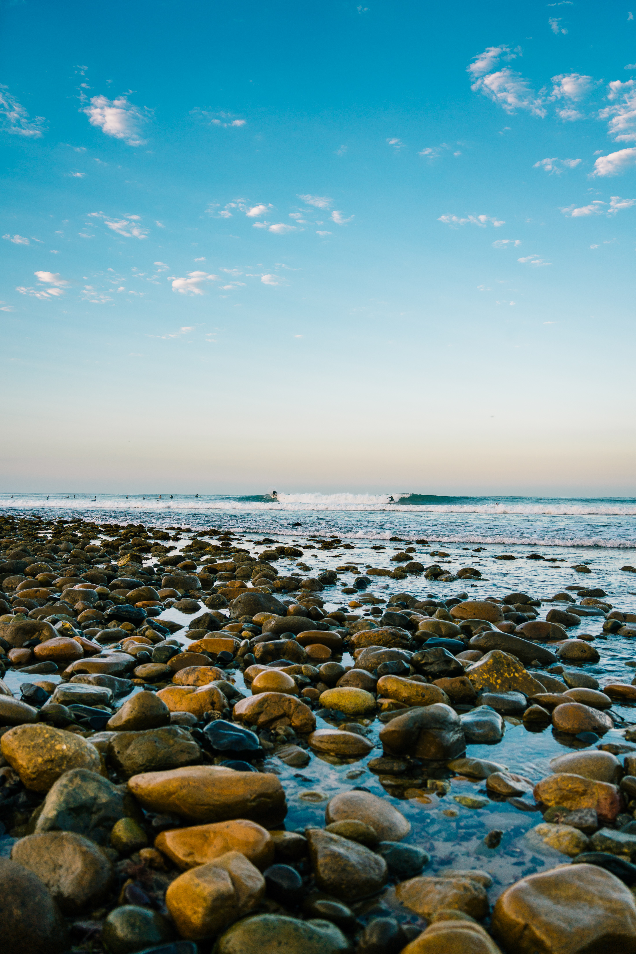 I’m always excited when September rolls around. For the third year in a row (and the last time it will happen here), the WSL finals came to town, bringing the top 5 men and women surfers to compete for a world title. I woke up at 4 AM and quickly hopped on my bike, loaded up with camera and beach gear, to stake my spot on the famous cobblestone point. I happened to get the best bit of beach there is, and the beach was quickly packed out before the sun even came up.